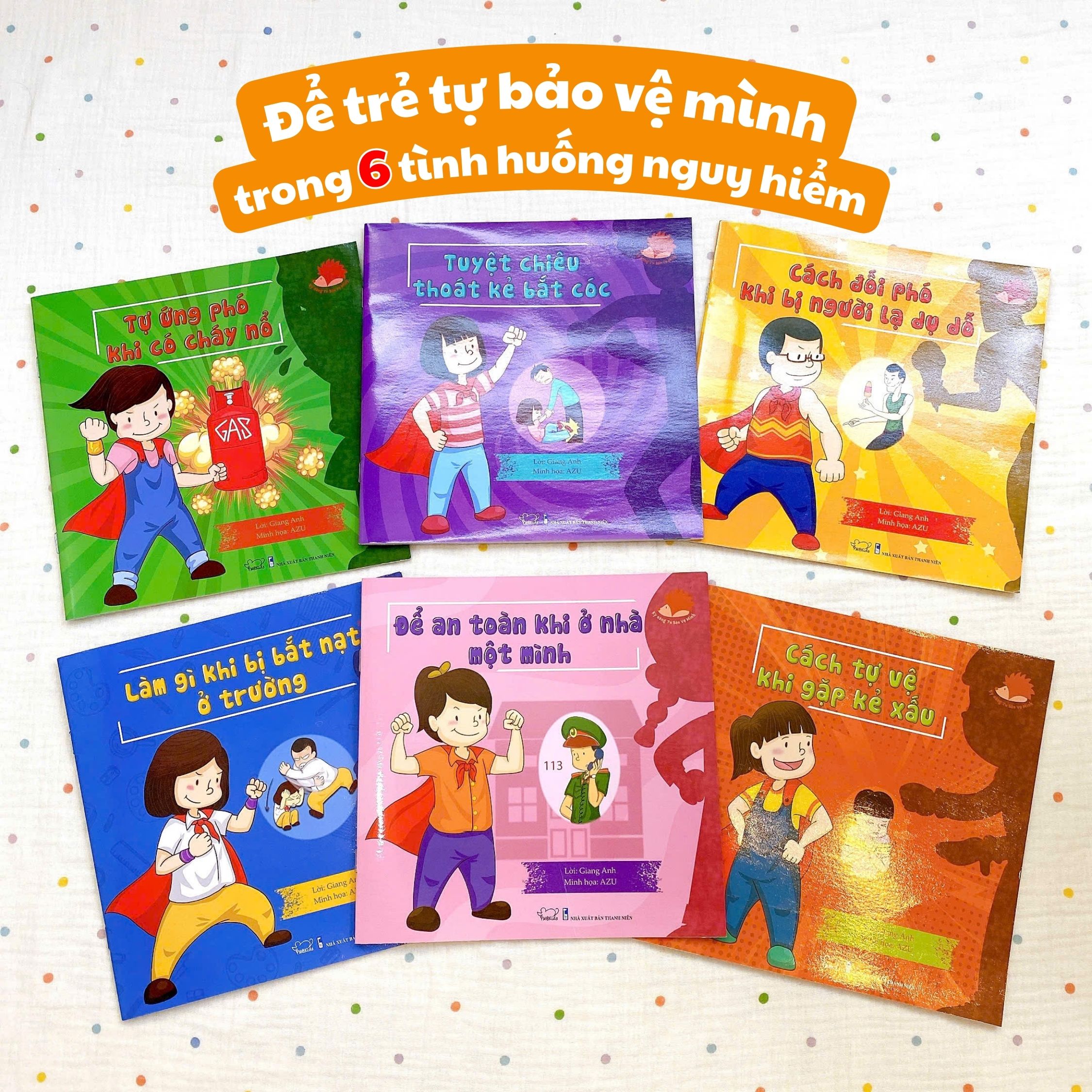 Bộ sách "Kỹ Năng Tự Bảo Vệ Mình" bao gồm 6 chủ đề, được thiết kế để trang bị cho trẻ em những kỹ năng cần thiết nhằm tự bảo vệ bản thân trong thế giới bên ngoài.