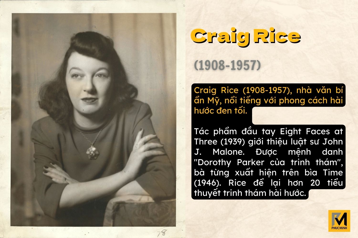 Craig Rice (1908–1957), tên thật là Georgiana Ann Randolph, là một trong những nữ nhà văn trinh thám người Mỹ thành công và có ảnh hưởng nhất trong Kỷ nguyên Vàng của thể loại này. Bà là nhà văn trinh thám đầu tiên xuất hiện trên trang bìa của tạp chí Time.